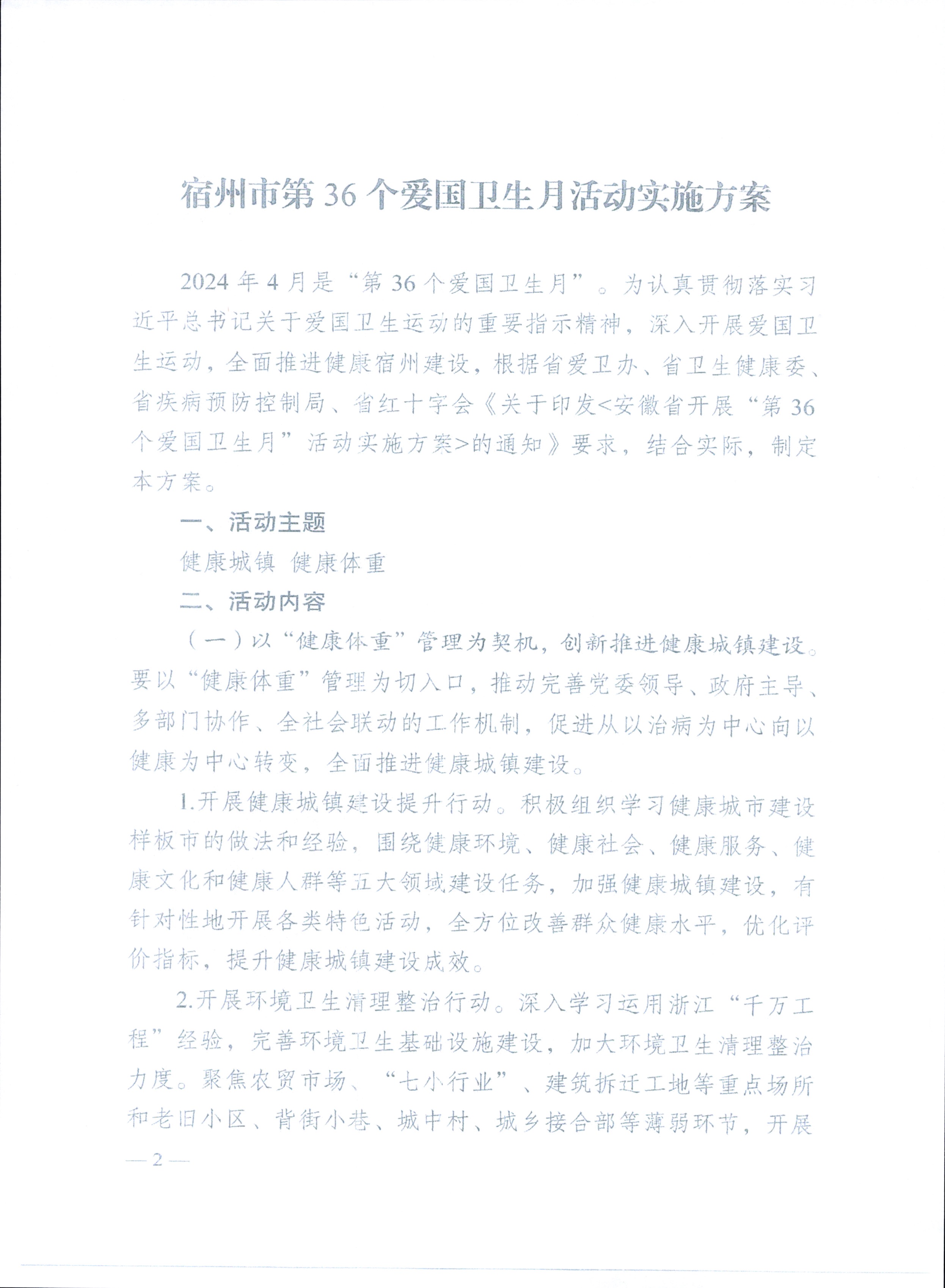 宿州藝文學(xué)校轉(zhuǎn)發(fā)關(guān)于印發(fā)《宿州市第36個(gè)愛(ài)國(guó)衛(wèi)生月活動(dòng)實(shí)施方案》的通知