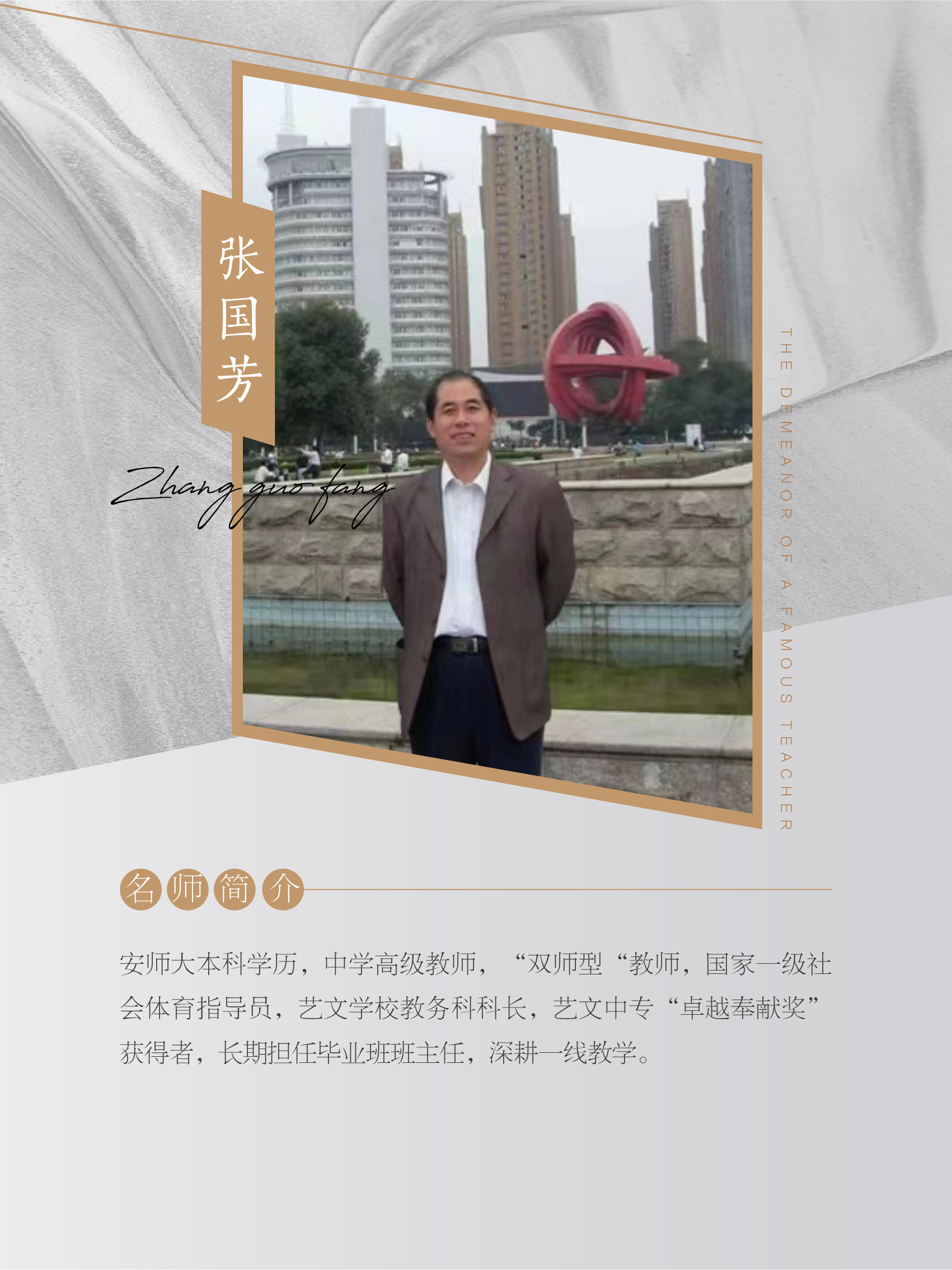 張國(guó)芳,安師大本科學(xué)歷,中學(xué)高級(jí)教師,“雙師型“教師,國(guó)家一級(jí)社會(huì)體育指導(dǎo)員,藝文學(xué)校教務(wù)科科長(zhǎng),長(zhǎng)期擔(dān)任畢業(yè)班班主任,深耕一線教學(xué),有《東漢政權(quán)“不抑兼并”原因探析》等多篇論文獲市級(jí)獎(jiǎng)項(xiàng),其中《中學(xué)歷史板書(shū)設(shè)計(jì)》被《農(nóng)村孩子報(bào)》收編發(fā)表,人物傳記《劉備》被《中國(guó)歷史名人傳略》收錄。