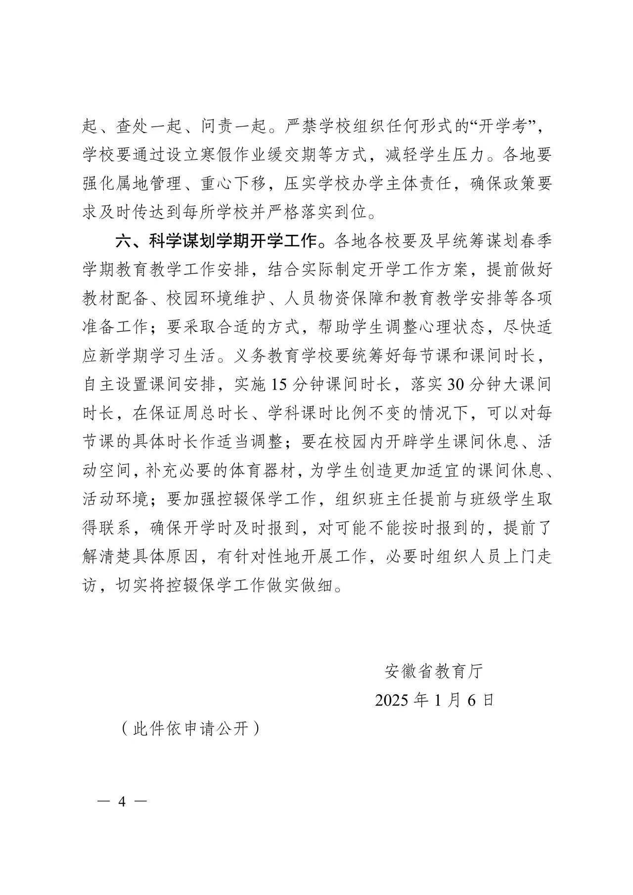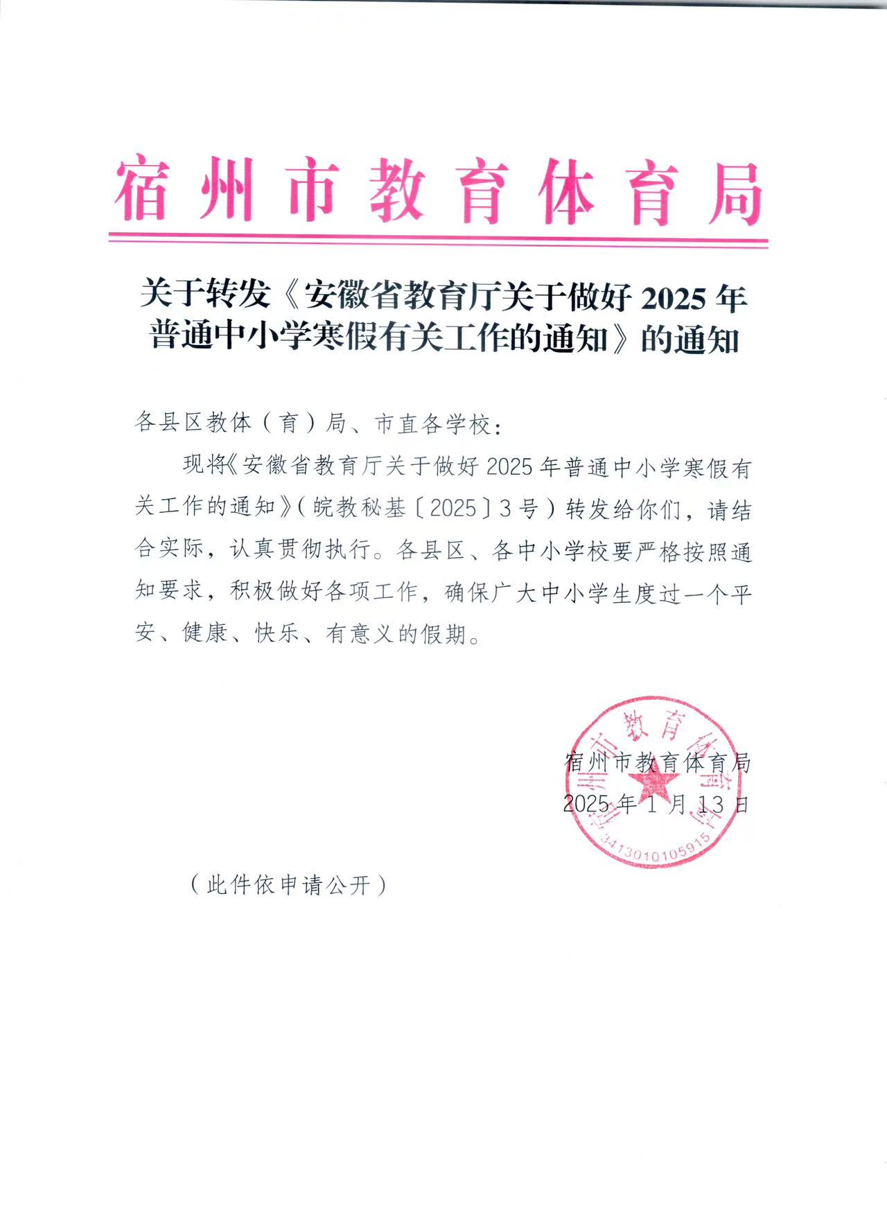 關(guān)于轉(zhuǎn)發(fā)《安徽省教育廳關(guān)于做好2025年普通中小學(xué)寒假有關(guān)工作的通知》的通知