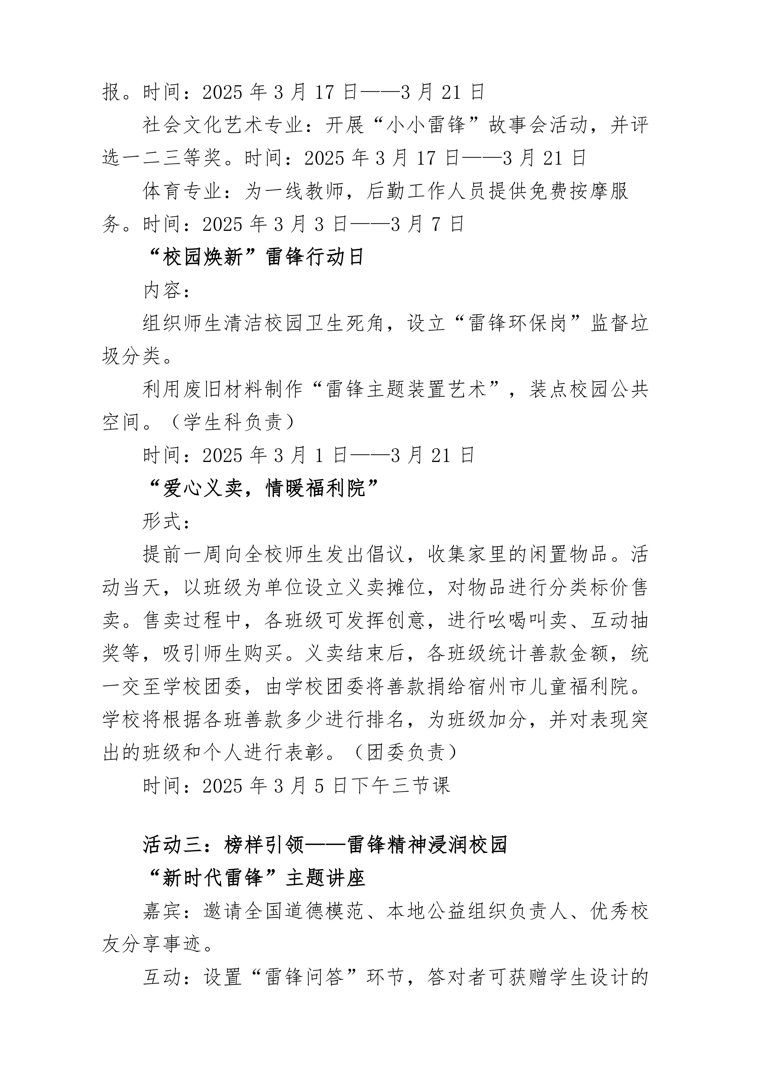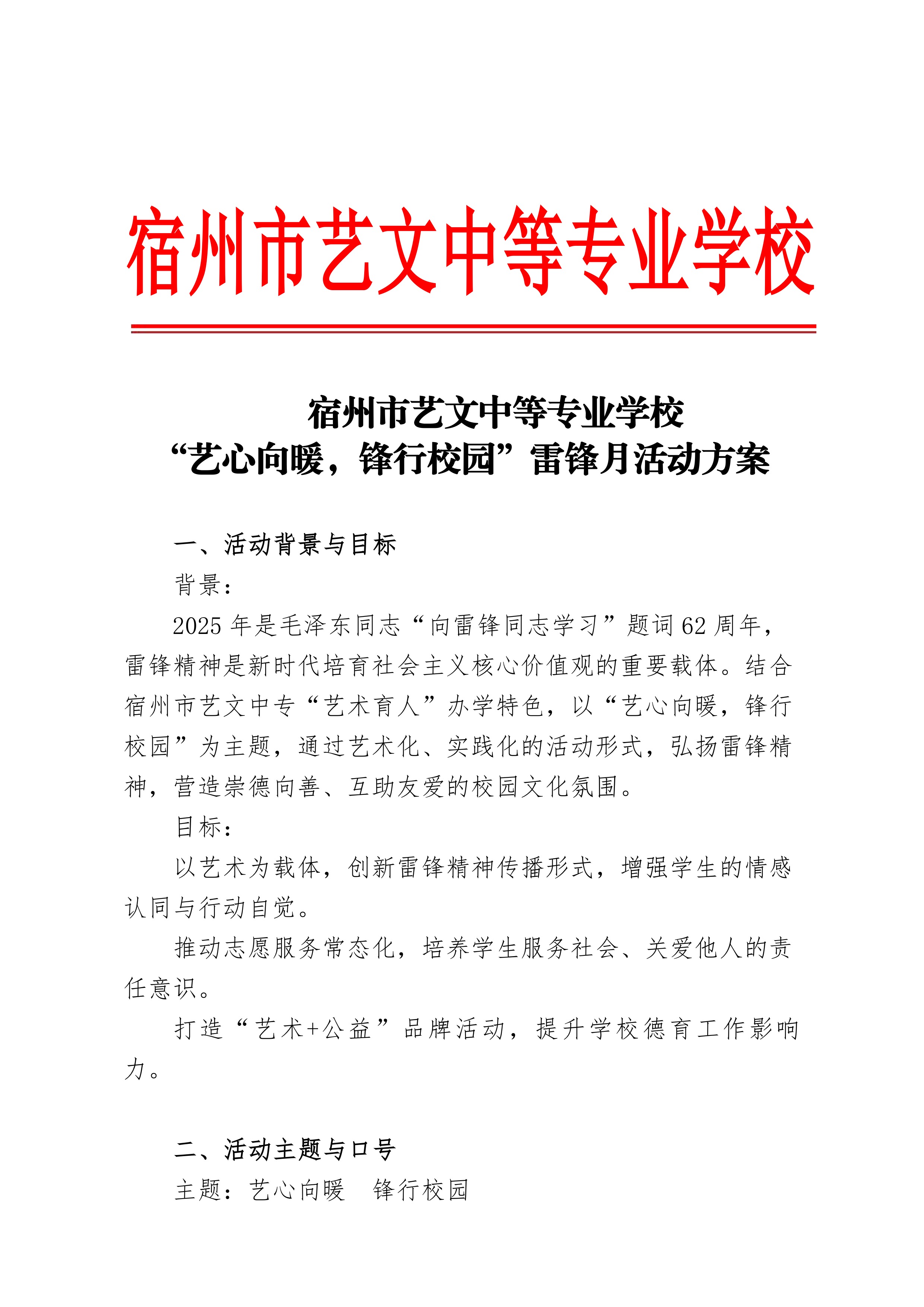 宿州市藝文中等專(zhuān)業(yè)學(xué)?!八囆南蚺h行校園”雷鋒月活動(dòng)方案