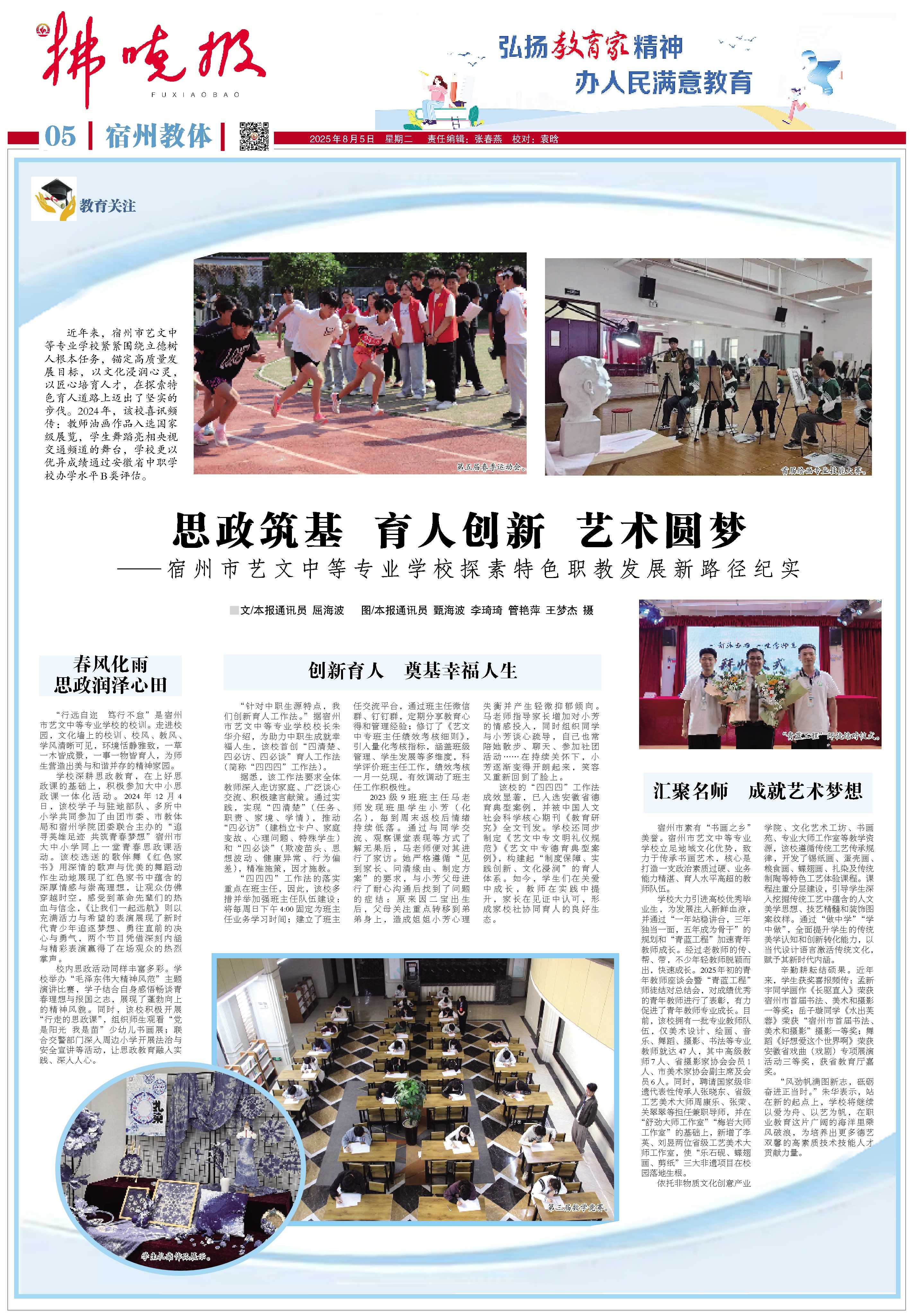 【拂曉報(bào)】思政筑基 育人創(chuàng)新 藝術(shù)圓夢(mèng)—宿州市藝文中等專(zhuān)業(yè)學(xué)校探索特色職教發(fā)展新路徑紀(jì)實(shí)