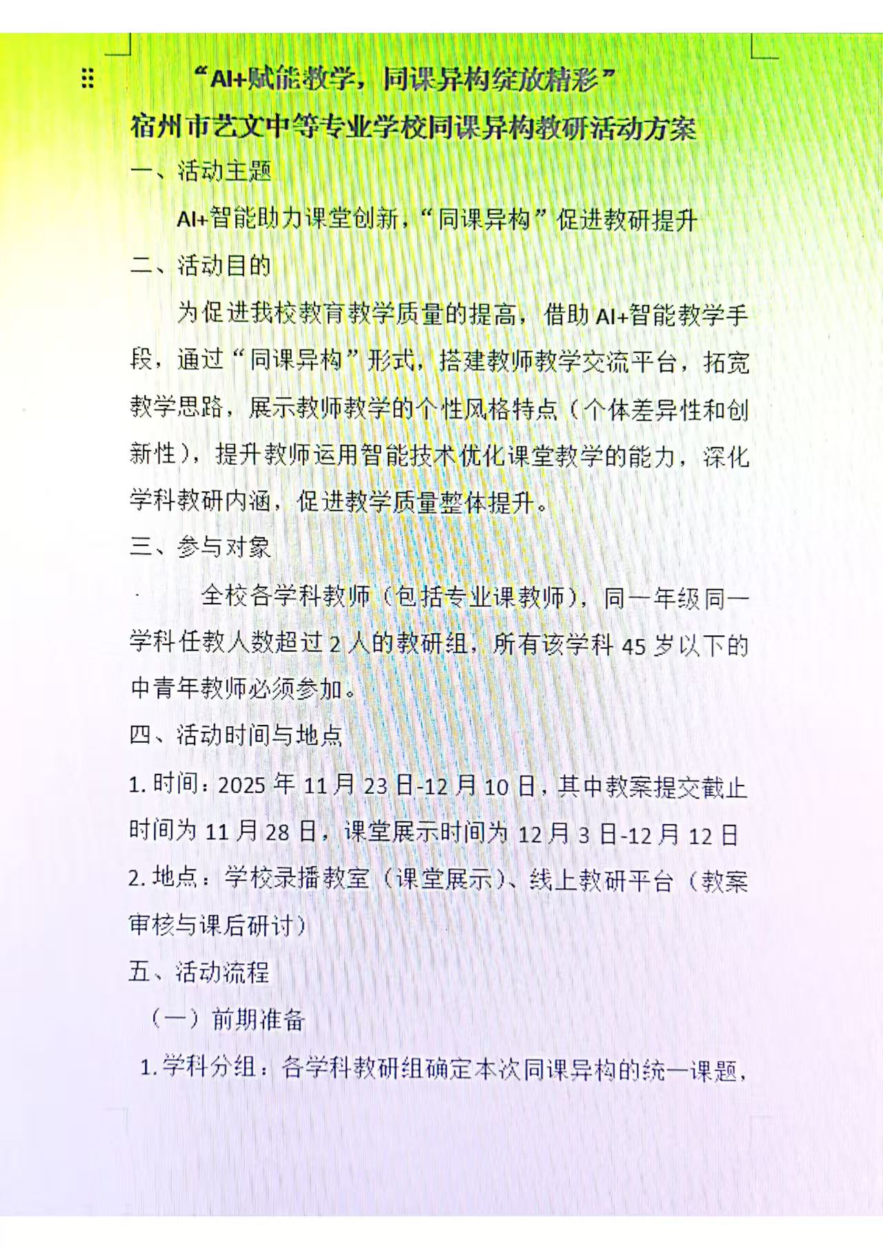 “AI+賦能教學(xué),同課異構(gòu)綻放精彩”宿州市藝文中等專業(yè)學(xué)校同課異構(gòu)教研活動方案