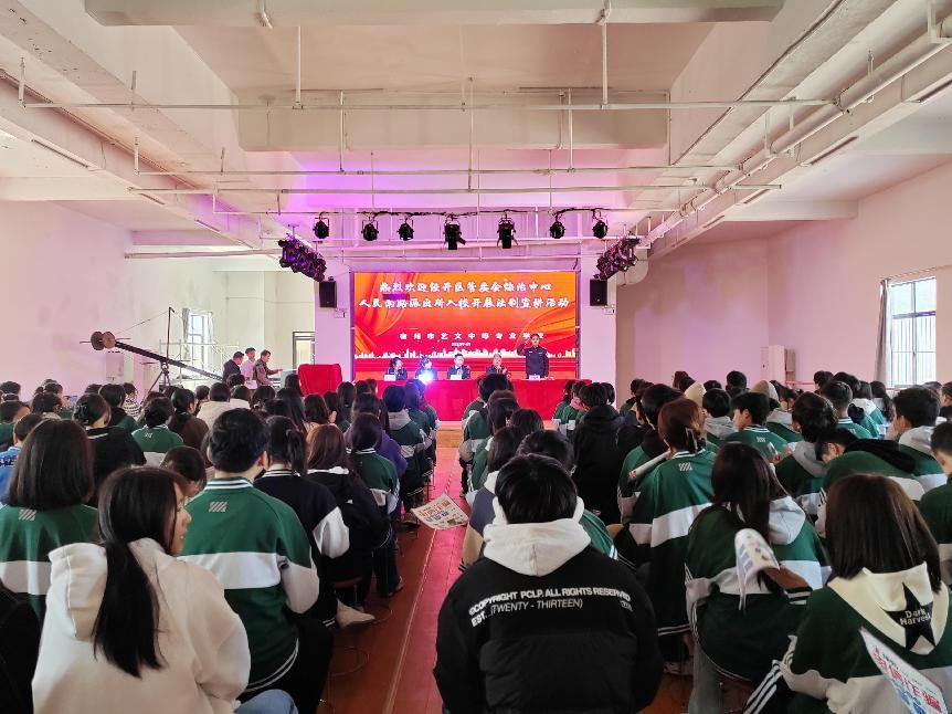 為落實宿州市預(yù)防青少年違法犯罪百日攻堅行動部署,進一步加強學(xué)生的法治觀念和法律意識,筑牢思想安全防線,藝文學(xué)校于4月7日在圖書館四樓演播大廳舉辦了法治副校長進校園活動。此次法治宣講活動邀請了藝文學(xué)校法治副校長--人民南路派出所李強妹副所長、宿州市經(jīng)濟開發(fā)區(qū)管委會綜治中心馬可主任主講。200余名師生代表到現(xiàn)場聆聽講座。