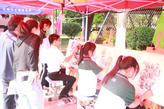 藝文學(xué)校以美術(shù)教育為根,傳承宿州書畫藝術(shù)為本,室內(nèi)布展了近年來各專業(yè)教育教學(xué)重要成果,室外延伸布展了美術(shù)、剪紙、茶藝、彩妝四項(xiàng)技能實(shí)操,各專業(yè)共50余名師生代表參與了本次職教活動周。