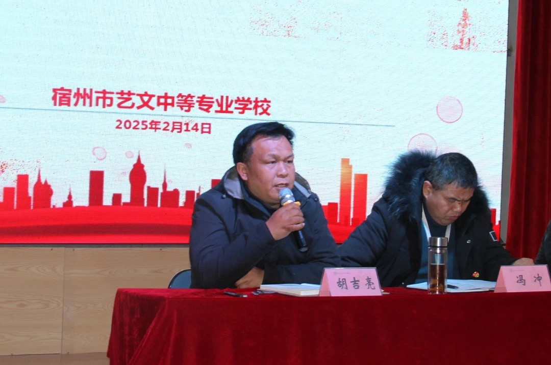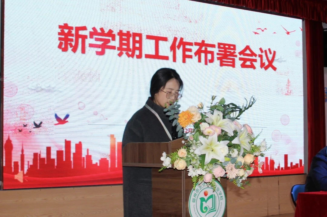 伴隨著金蛇迎春的腳步,滿載憧憬與希望的新學(xué)期如期而至。2月14日上午,宿州市藝文中等專業(yè)學(xué)校成功召開2025年度春季學(xué)期開學(xué)工作部署會議。會議由黨支部副書記、工會主席史雪婷同志主持,共四項議程。黨支部書記馮沖、校長朱華、副校長胡吉亮及全體教職工參會。