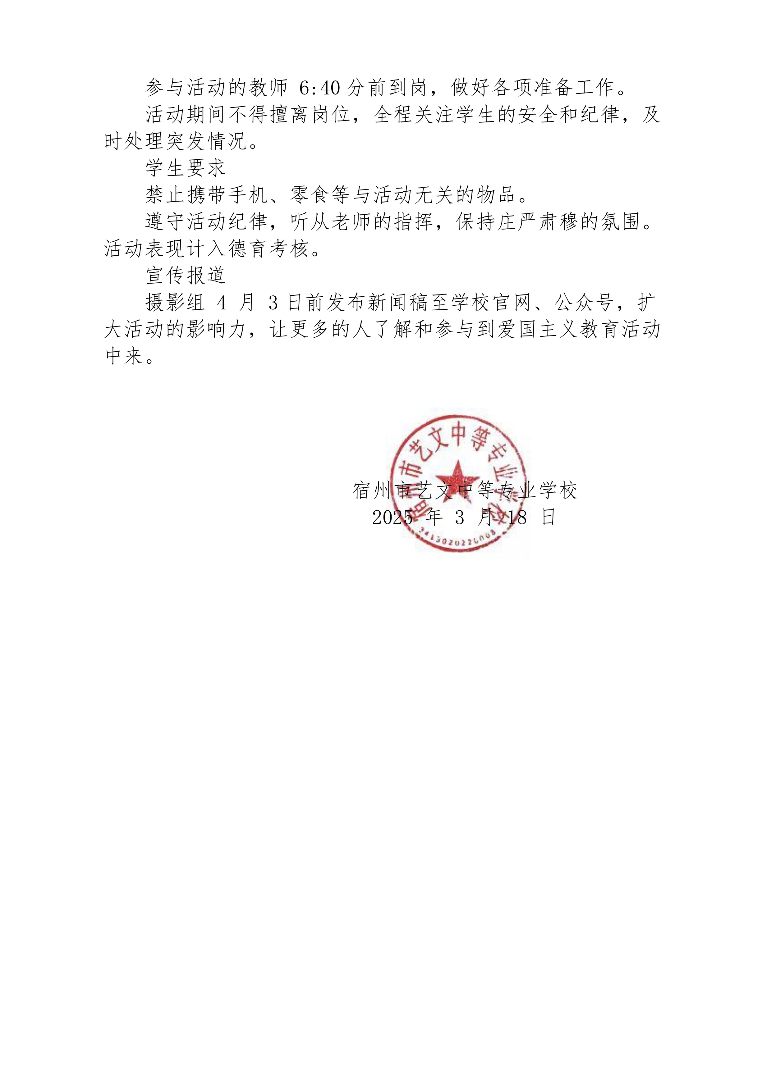 宿州市藝文中等專業(yè)學(xué)校開展“祭奠英雄先烈、傳承紅色基因” 愛國主義教育活動(dòng)實(shí)施方案