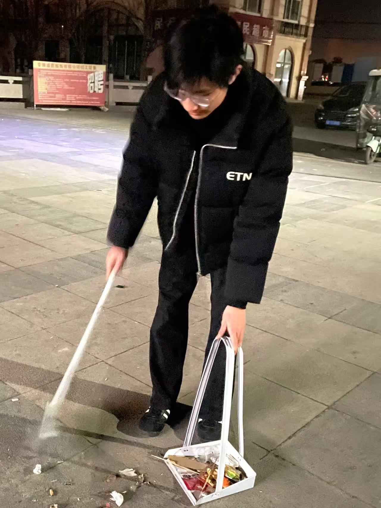 晚自習(xí)后,班級門口的散落垃圾總逃不過徐智豪的眼睛。他默默拿起掃把清理,以行動(dòng)維護(hù)校園環(huán)境。班主任評價(jià):“他如星辰般微小卻堅(jiān)定,展現(xiàn)了新時(shí)代青年的自覺擔(dān)當(dāng)。”