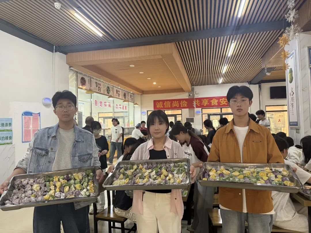 下午3時(shí),學(xué)生科策劃組織校學(xué)生會(huì)成員進(jìn)行“手·醞煙火”包餃子創(chuàng)意賽,以團(tuán)隊(duì)協(xié)作點(diǎn)燃勞動(dòng)熱情?;顒?dòng)采用南瓜粉、紫薯粉等彩色面粉及新鮮餡料,設(shè)置“最佳美味獎(jiǎng)”“創(chuàng)意造型獎(jiǎng)”兩項(xiàng)評(píng)比。參賽小組從揉面、調(diào)餡到造型設(shè)計(jì)全程自主完成,既有“最快手速”的默契比拼,也有“月牙餃”“玫瑰花餃”等創(chuàng)意呈現(xiàn)。賽后,師生共享勞動(dòng)成果,并主動(dòng)清理場(chǎng)地、分類(lèi)垃圾,踐行環(huán)保理念。活動(dòng)將勞動(dòng)技能與團(tuán)隊(duì)協(xié)作深度融合,讓“一粥一飯當(dāng)思來(lái)之不易”的理念深入人心。