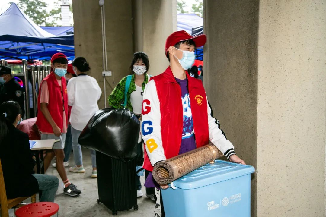 在整個報(bào)到的過程中,你一定能看到遍布在校園、穿著紅馬甲的學(xué)生志愿者們,他們將會帶領(lǐng)你們找到宿舍。