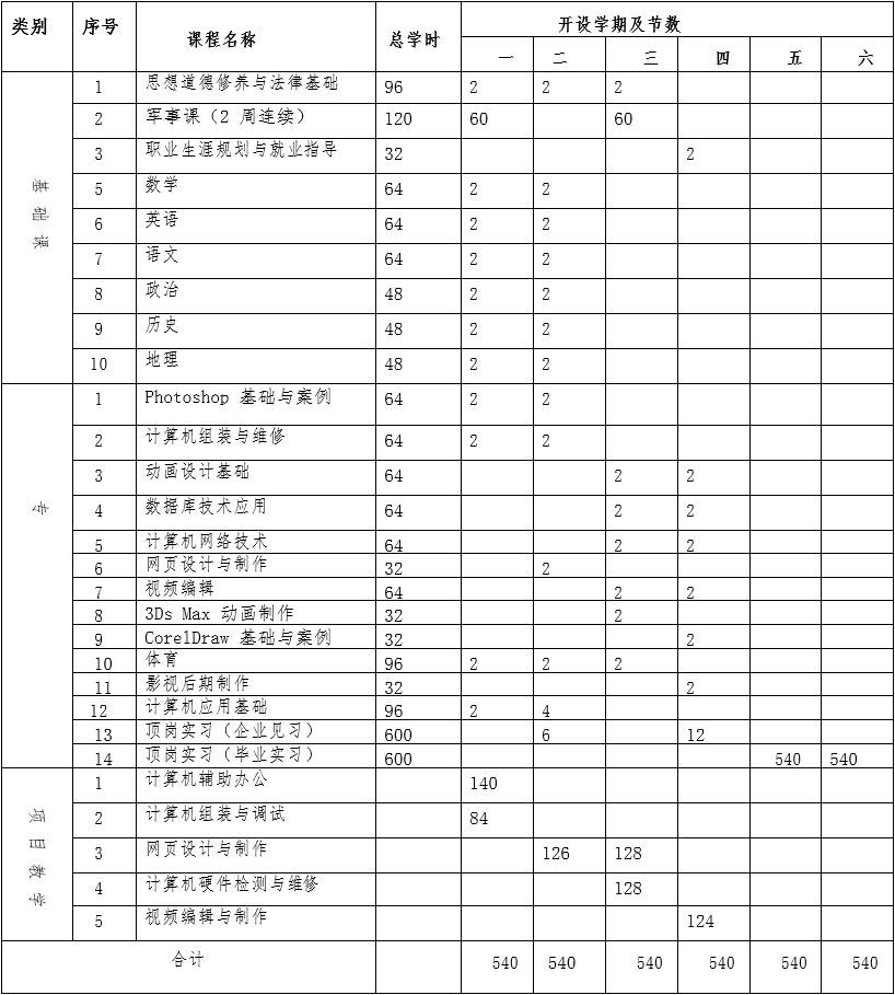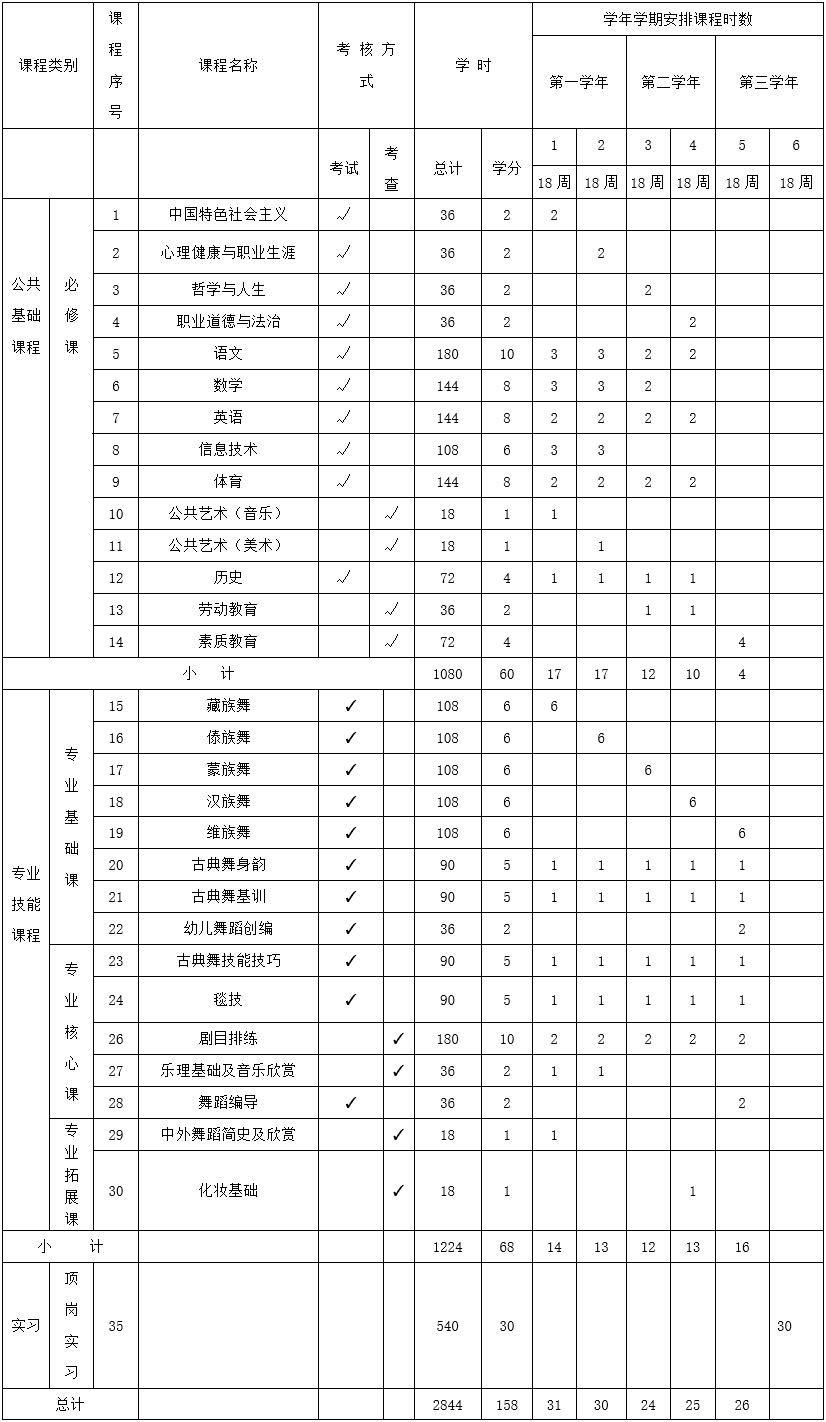 宿州市藝文中等專業(yè)學校各專業(yè)課程計劃安排