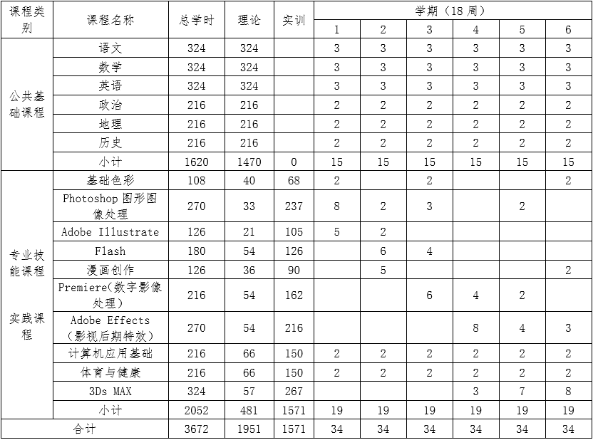 一、繪畫專業(yè)教學計劃安排(主干專業(yè))